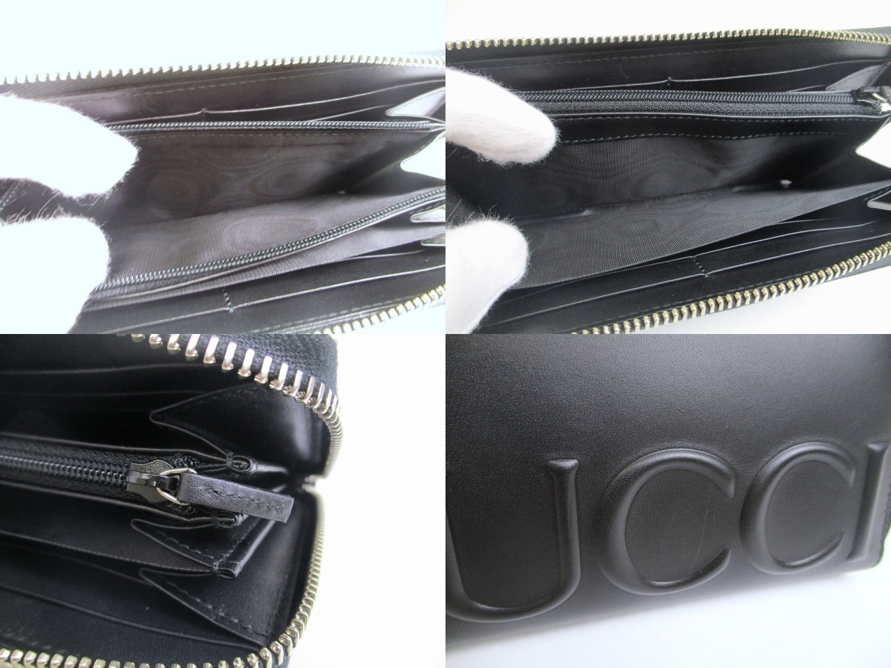 Product : GUCCI Moon Logo Black Leather Round Zip Long Wallet #a854