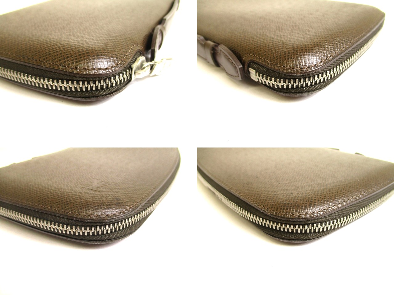 Product : LOUIS VUITTON Taiga Dark Brown Leather Round Zip Wallet Travel Case #a856