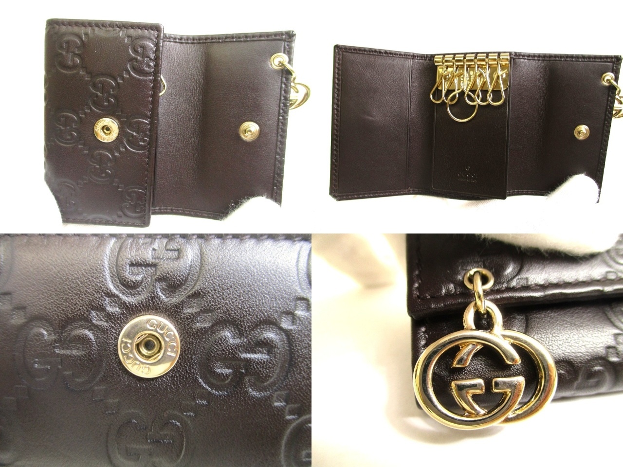 Product : GUCCI GG Interlocking G Dark Brown Leather 6 Pics Key Chain #a870