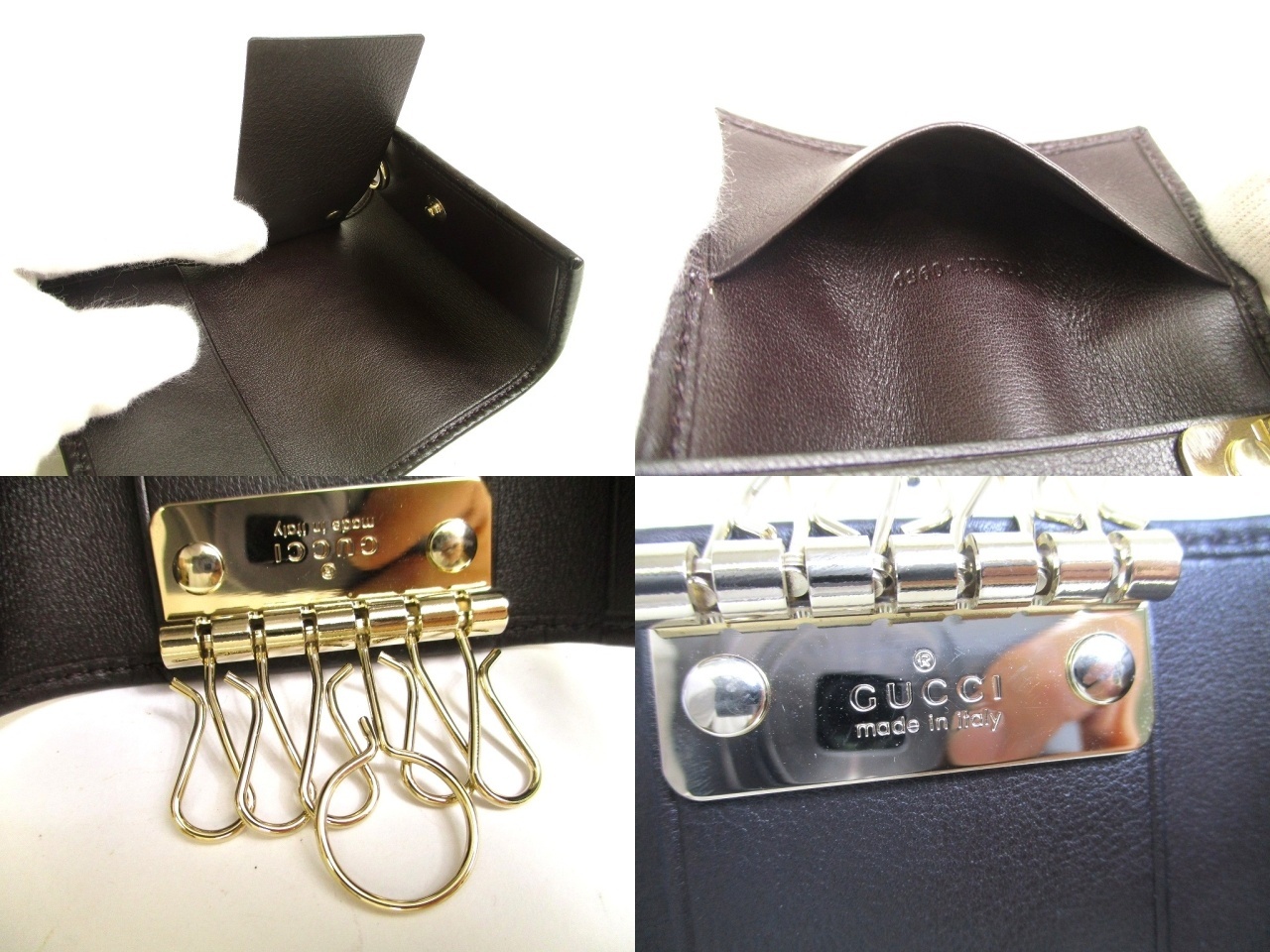 GUCCI GG Interlocking G Dark Brown Leather 6 Pics Key Chain #a870 [a870]