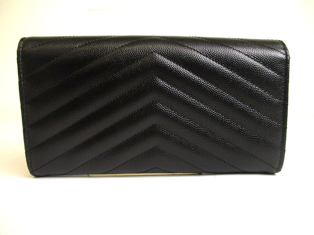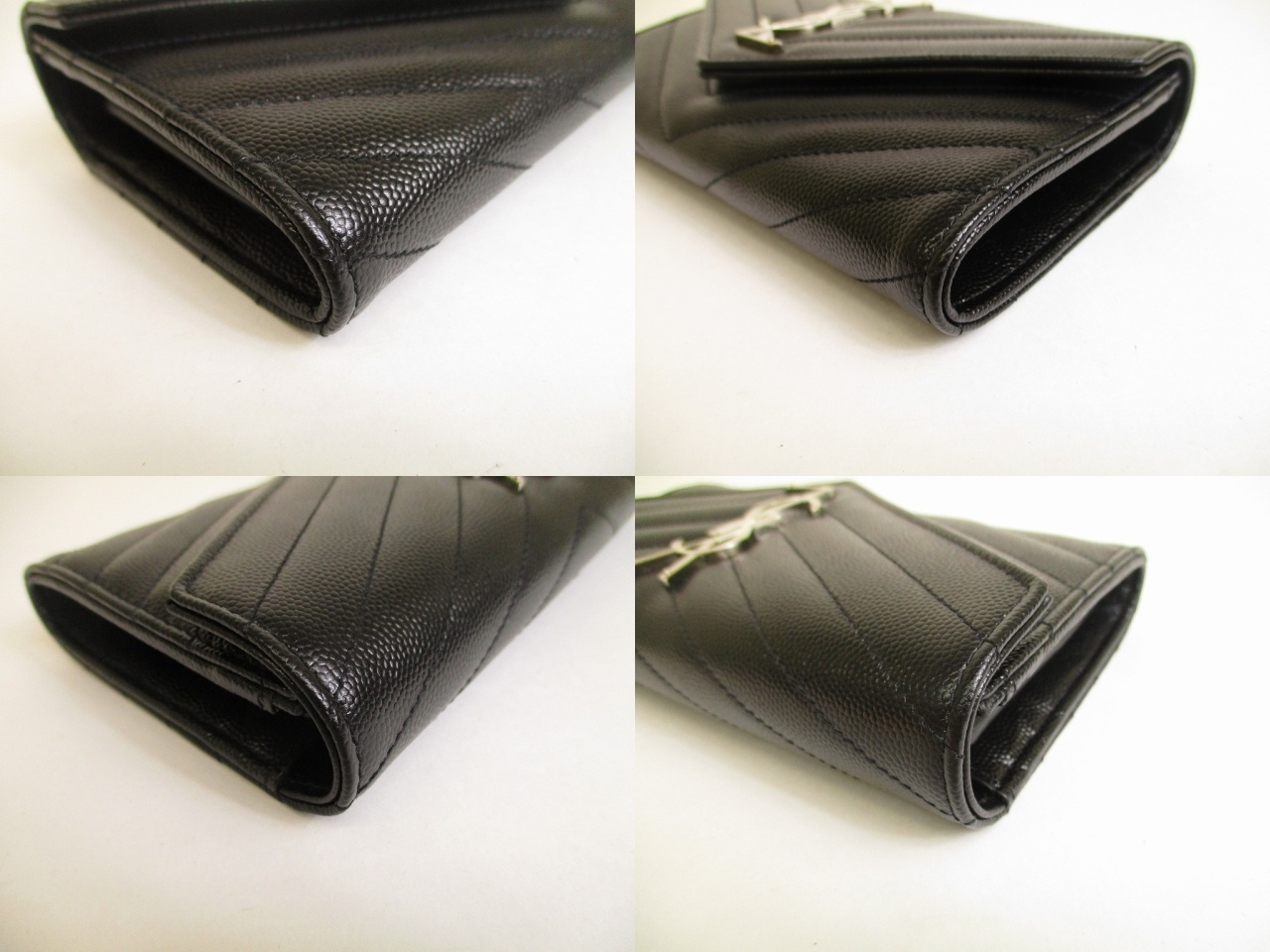 Product : Saint Laurent YSL Silver YSL Motif Black Leather Long Flap Wallet #a875