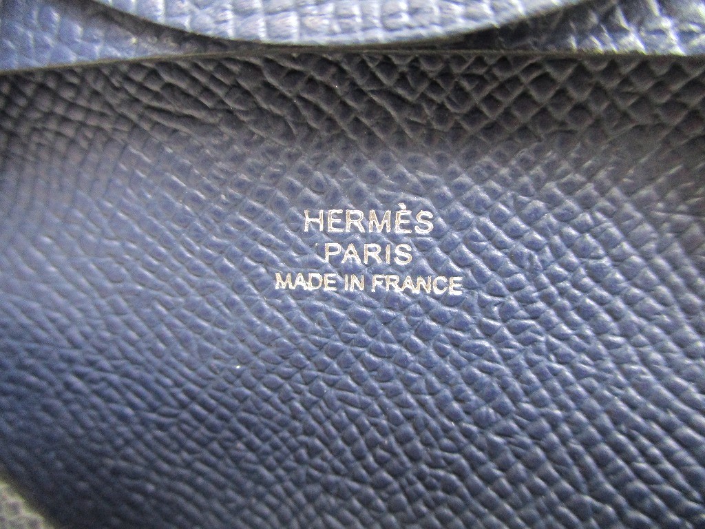 HERMES Blue nuit Veau Epson Leather Coin Purse Bastia #a919 [a919]