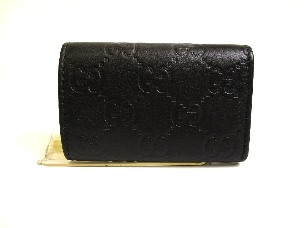 GUCCI Guccissima Black Leather 6 Pics Key Chain #a921 [a921]