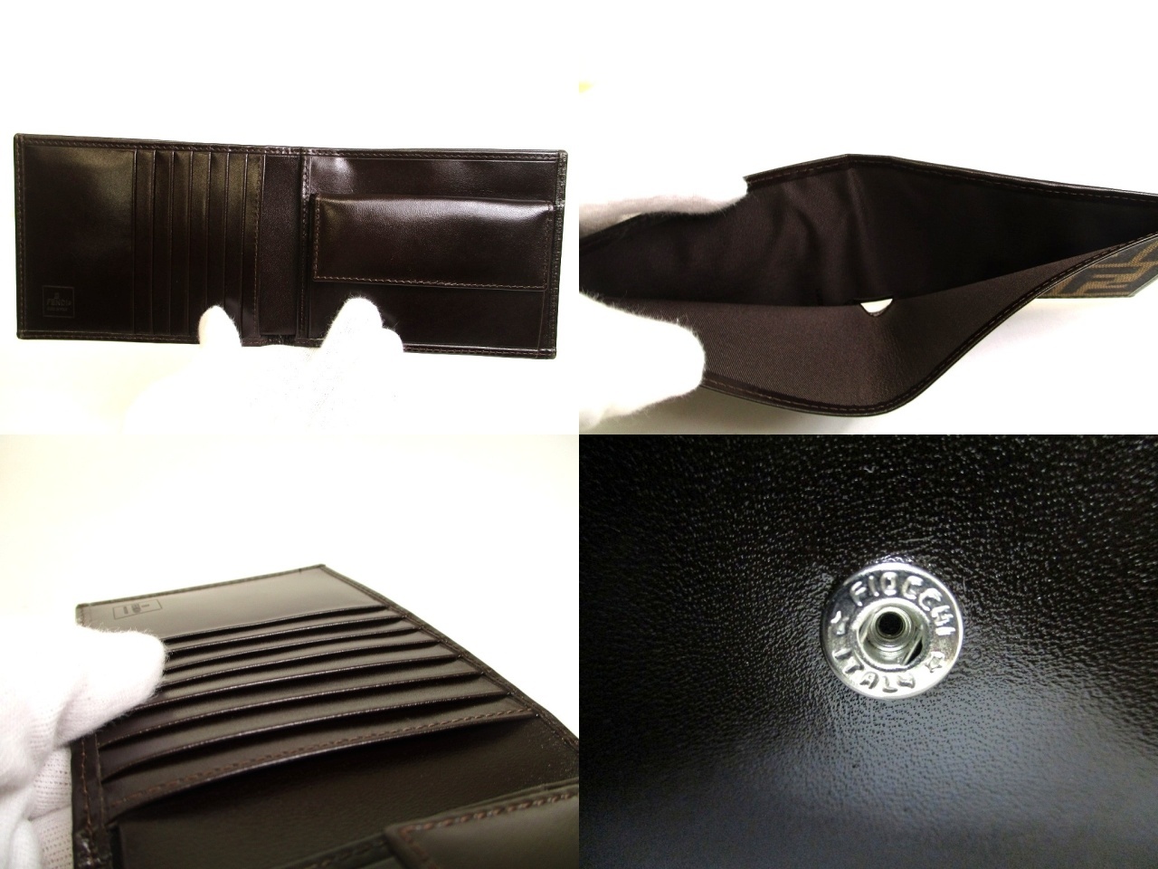 Product : FENDI Zucca Khaki Canvas Brown Leather Bifold Wallet Compact Wallet #a934