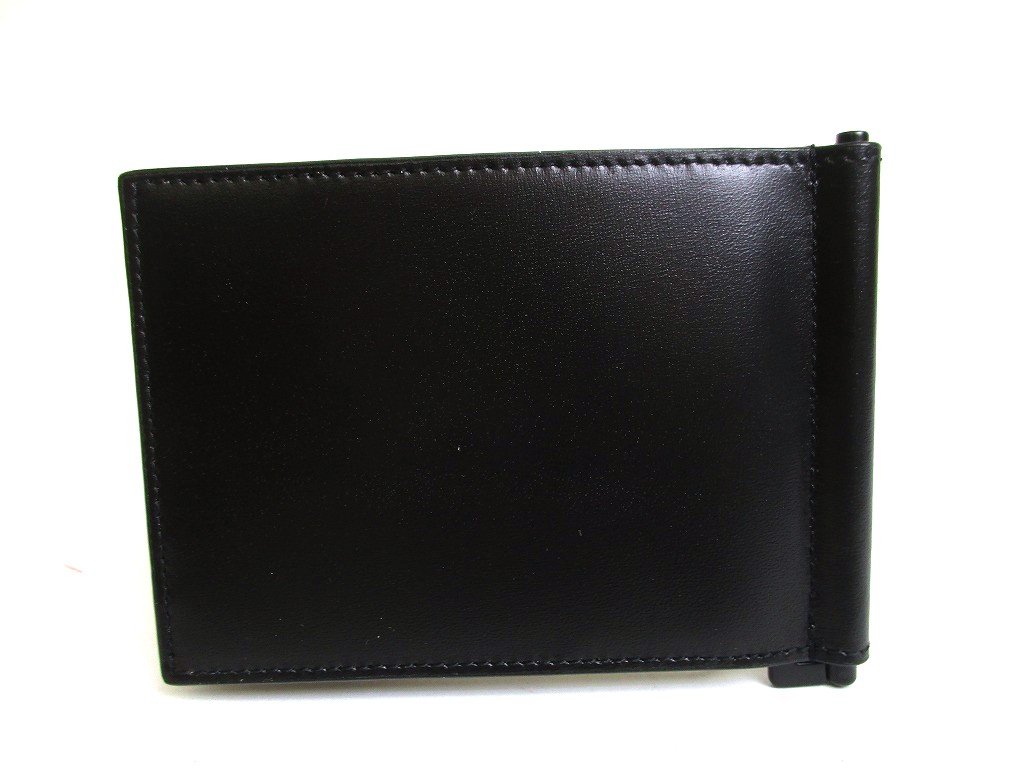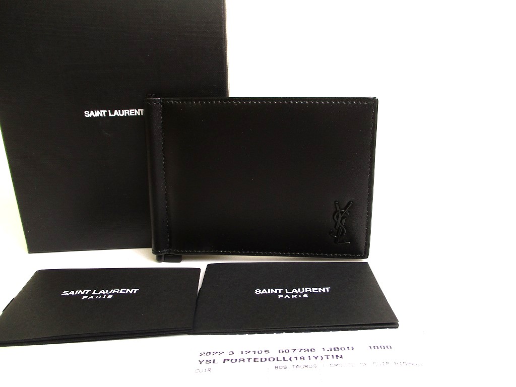 Product : Saint Laurent YSL Black Leather Gold H/W Bifold Bill Wallet #a956